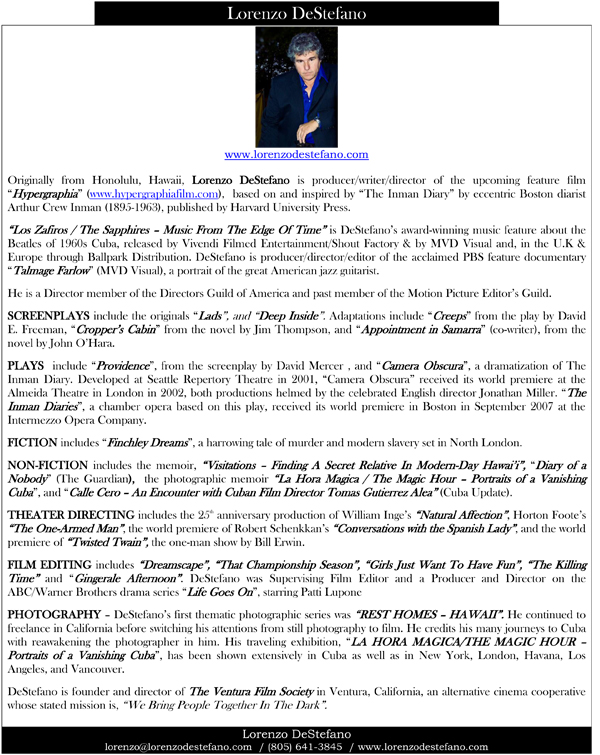 VISITATIONS – Finding A Secret Relative In Modern-Day Hawai’i” by Lorenzo DeStefano www.visitationsmemoir.com / info@visitationsmemoir.com (805) 641-3845 / 805 302-2480